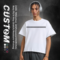 Tシャツメンズ100% コットン275GSMヘビー級オーバーサイズドロップショルダーストリートウェアブランクボックスフィットクロップTシャツメンズ