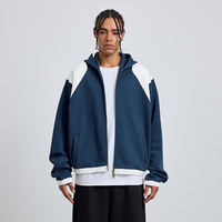 2026 yeni Streetwear özel 475G erkek 100% pamuk kapüşonlu çift fermuar Terry kontrast Patchwork kapşonlu kazak Hoodies erkekler için